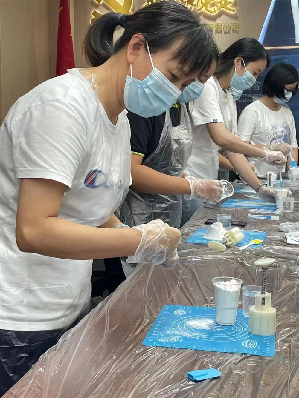 俗話說,“八月十五月兒圓,中秋月餅香又甜”。月餅最初是用來祭奉月神的祭品,沿傳下來,變有了中秋吃月餅的習俗。后來人們逐漸把中秋賞月與品嘗月餅,作為家人團圓的象征。因此我司特在松江工會的指導下為員工準備了制作月餅的活動。